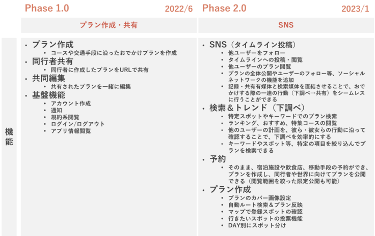 以下の機能を新たに搭載し、「下調べ→プラン作成→予約→共有」が可能な一気通貫したシームレスなおでかけサービスへと進化します。