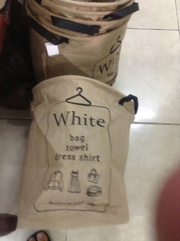 ④コーヒー袋から作られたランドリーボックス(ゴミ箱としても使用可)
