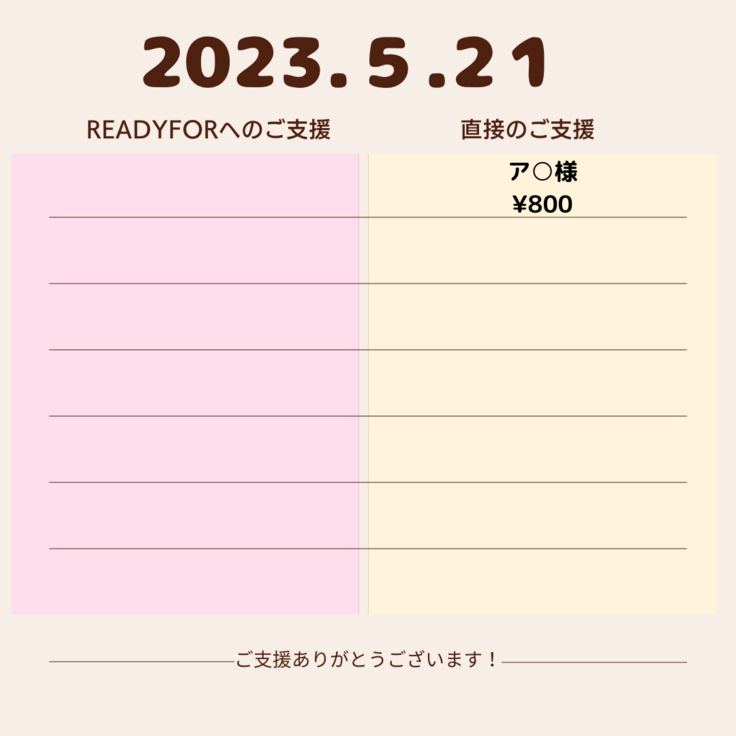 ご支援誠にありがとうございます。
