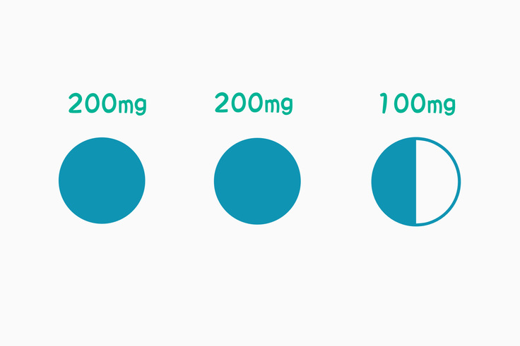 1錠=200mg半錠=100mg