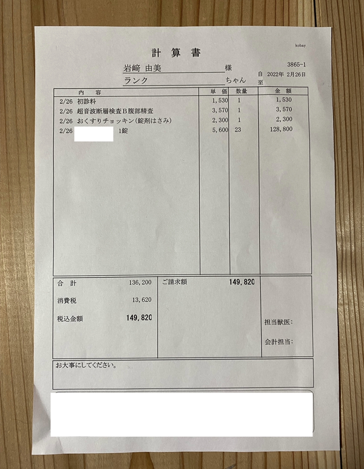 それに加え、検査代、協力病院までの交通費等も発生しますが、今回の支援金は投薬費に充てさせて頂くので、投薬費の差額、検査代、交通費は自己資金にて補填させて頂きます。