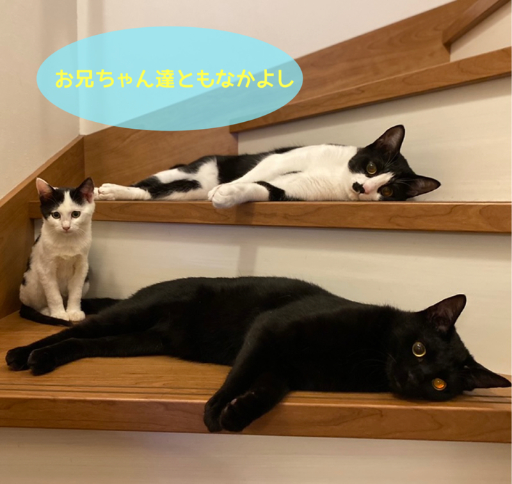 きれいな真っ白な毛が生えてきました。先住猫の保護猫男の子2匹ともすぐ打ち解けて仲良くなりました。避妊手術も無事終わり美人なランちゃんへと成長しました。