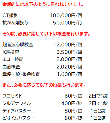 費用的には、抗がん剤の費用だけでも1か月に5万円は必要。