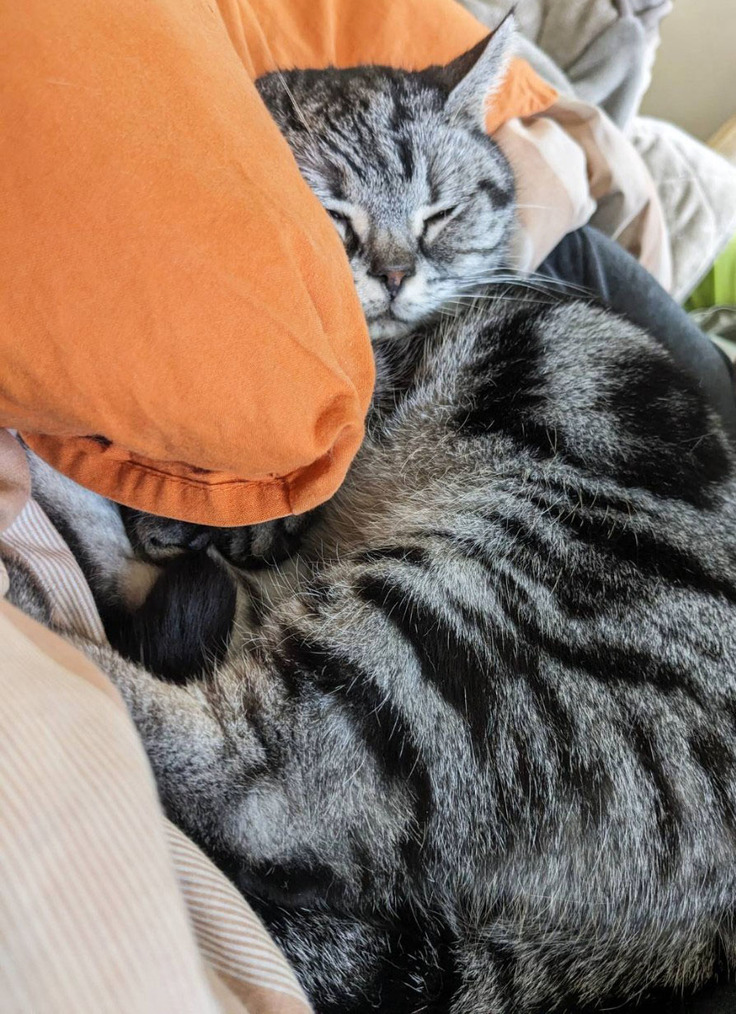 寝ている途中で一瞬息が止まり、息苦しそうに目覚める姿や、突然はじまる発作を見るとあまりにかわいそうで、どうにかしてあげたいという思いが大きく募ります。もう一度、高い所にのぼったり、仰向けで寝転がったり、好きなように過ごさせてあげたいです。