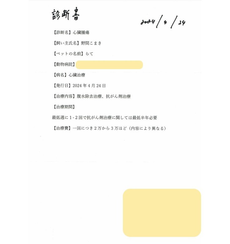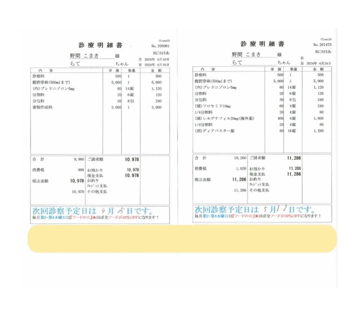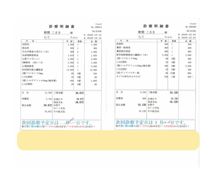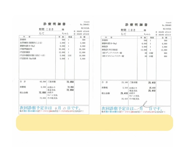 ページ上に掲載してる診断書や診療明細書などの資料は全て動物病院から掲載の許可を取っております。