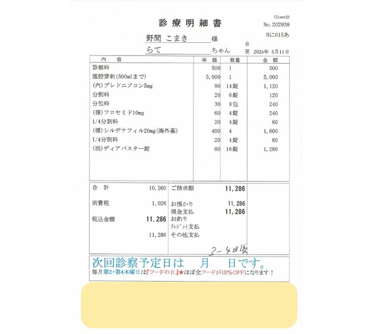 ただ、「またすぐに溜まって苦しくなってしまうと思うので、次回は早めに連れてきて様子を見せてください」と言われました。