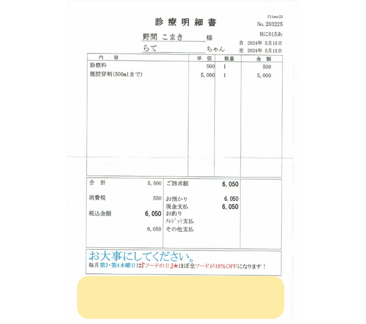 とりあえず、昨日は腹水を抜き、改善が見られるか様子を見てくださいと言われました。