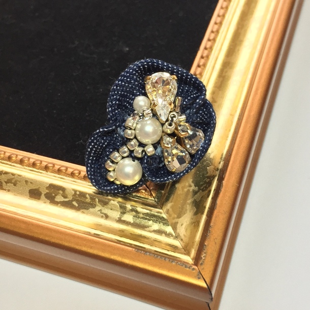 カジュアルコーディネートに取り入れやすいデニムをつまみ細工で