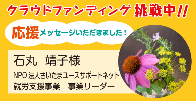 NPO法人さいたまユースサポートネット就労支援事業 石丸靖子様より応援メッセージをいただきました