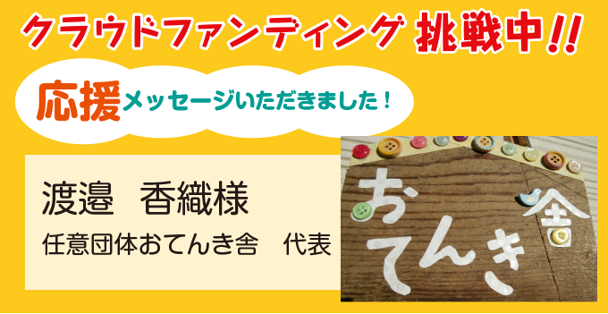 任意団体おてんき舎 代表 渡邉香織様より応援メッセージをいただきました