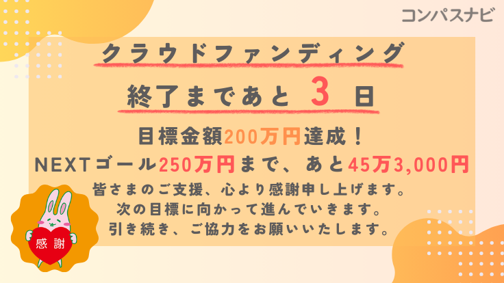 当初の目標として掲げた100名に向けて、さらに1名でも多くの若者のリスタートを後押し出来るよう、ネクストゴール達成に向けて最後まで頑張ってまいります。