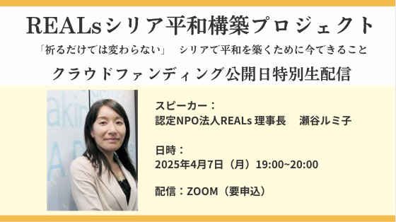 REALsシリア平和構築プロジェクト クラウドファンディング開始予告・オンラインイベントのご案内