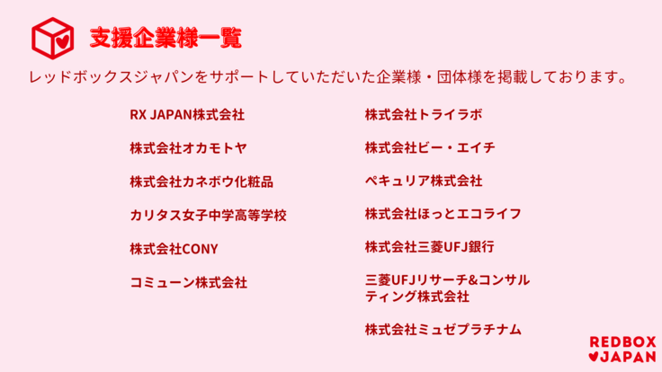 多くの方へレッドボックスジャパンの活動を知っていただくために、企業様とのイベントコラボレーション、プロモーション活動を実施しました。