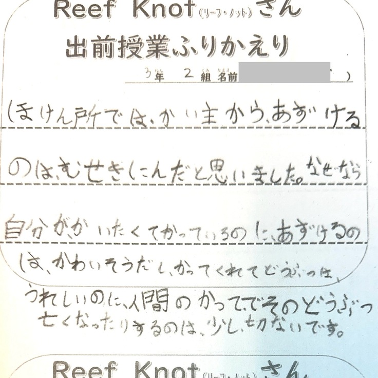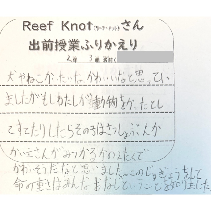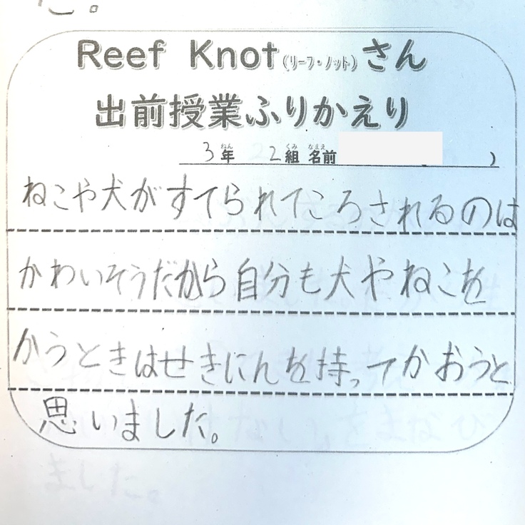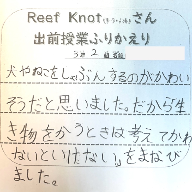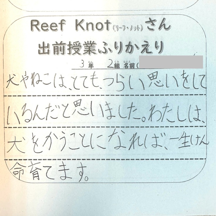 「聞いて聞いて!今日は動物保護してるオッチャンとお姉ちゃんがきたよ!」なんてどんどんご家族に伝わって、