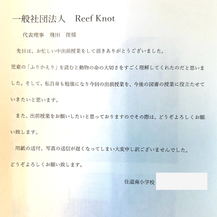先月3月4日、絵本をお贈りした大阪府内の小学校からご依頼を受け、