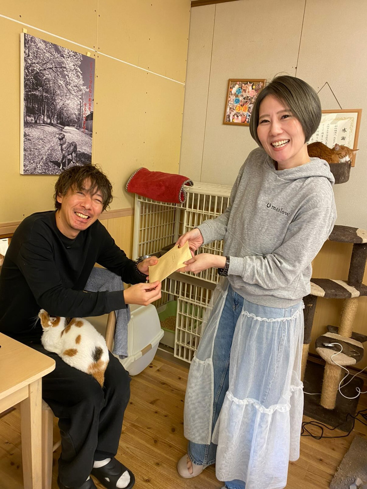 バサコ様の美容室のお客様が当施設の猫ちゃんの里親様になってくださったり、