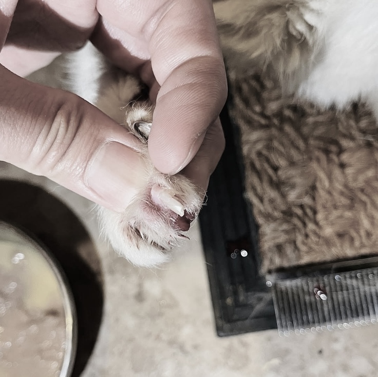 爪が伸び過ぎて肉球に食い込んでるのを抜き、翌る日病院へ。