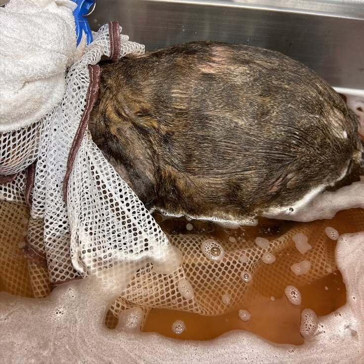 お風呂に入れるとこれまでのお外生活の過酷さがお湯の色を変えました。