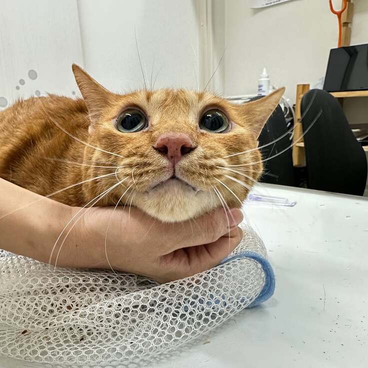 虎次くん、保護した時は緊張で開口呼吸をしていました。