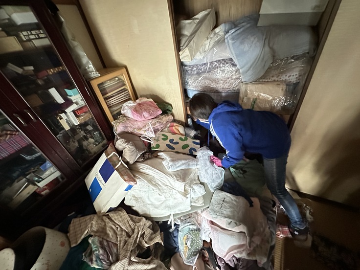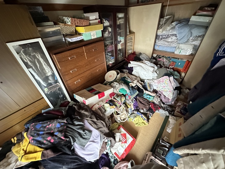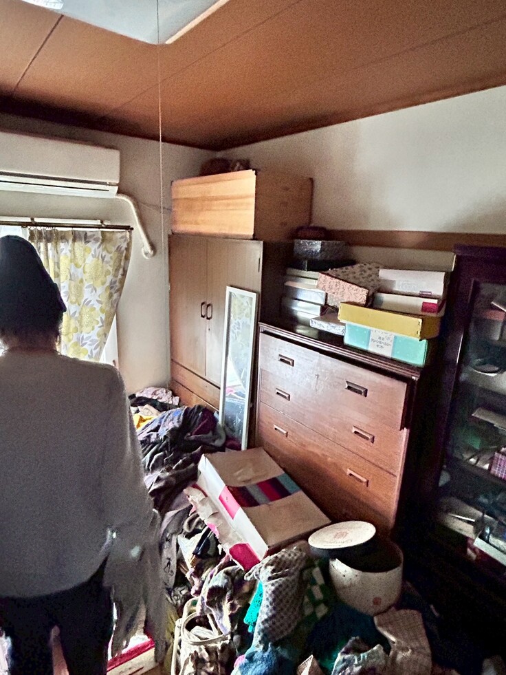 荒れたお部屋には猫ちゃんの写真、カレンダー、小物がたくさん。