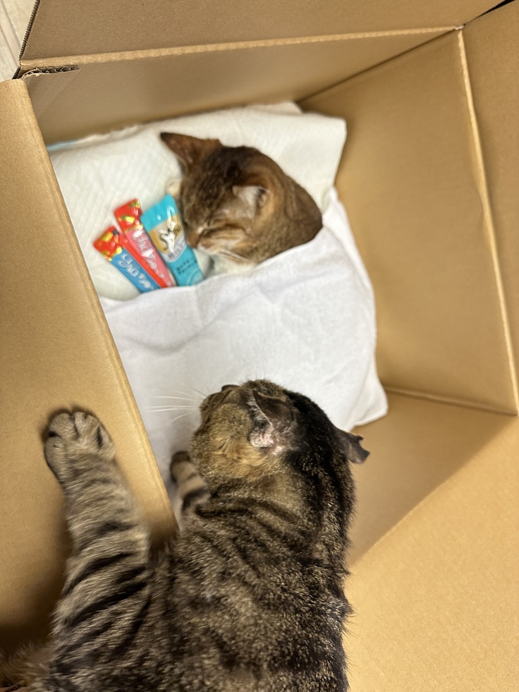 その間に、同じくエイズ陽性の志貴ちゃんやとらおくんがやってきて、でかおは二匹の面倒をしっかり見てくれました。