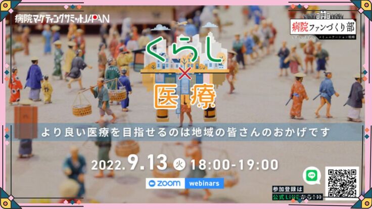 このセミナーでは、「くらし × 医療」をテーマに、地域の皆さんから愛される病院の取り組みが紹介されます。