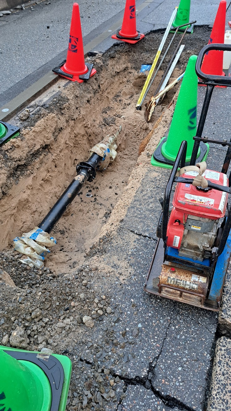 地元の業者さまが急ピッチで水道管の復旧工事を行ってくれています