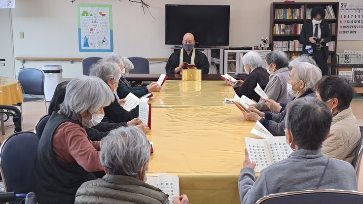 真宗のお寺、光済寺住職さんがお経を唱えに来てくれました