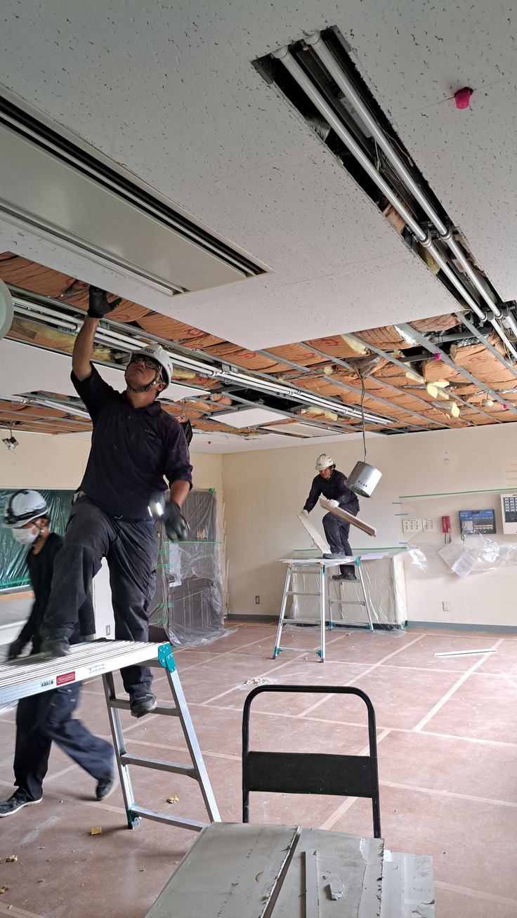 天井が波を打つように剥がれ解体作業 きれいに張り替えていただきました