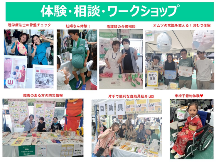 血管年齢測定、片麻痺疑似体験、おむつ体験会など)