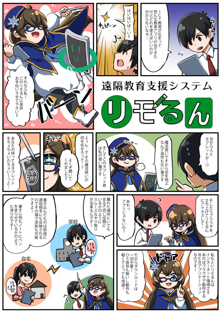 その中で、工事現場での電子黒板を使ったクラウド上での情報共有を使用したシステムがあり、そのシステムを応用して、遠隔教育支援システム「リモるん」を開発しました。