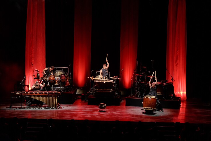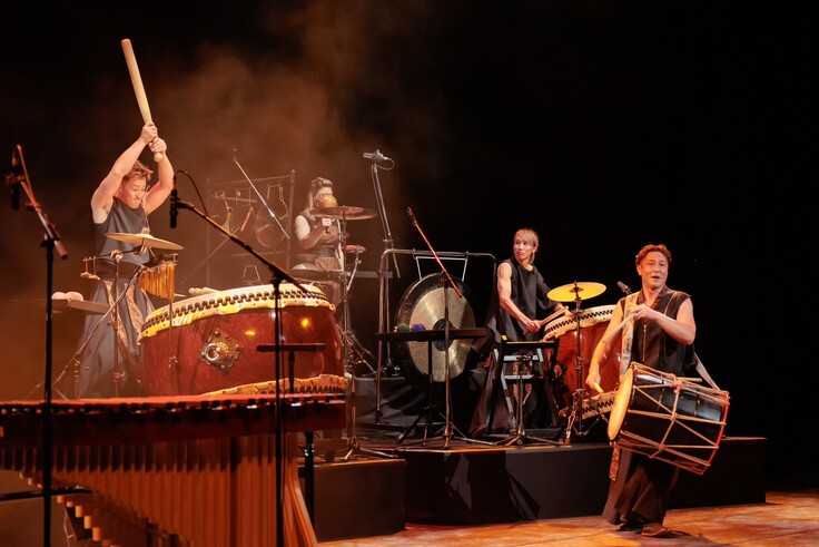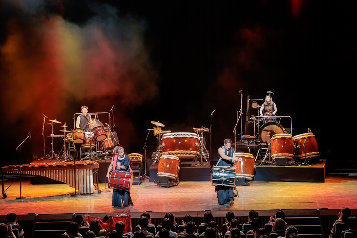 千席を越える大ホールでのコンサートから、カフェや寺院などの小スペースでのライブまで、楽器構成と演出でシチュエーションに応じた演奏を展開します。 音圧を生かした和太鼓の曲、グルービーなリズムのオリジナル曲、それにクラシック系譜の現代作曲家の作品とまでレパートリーを持ち、和太鼓ファンに限らず、幅広い音楽ファンの注目を集めています。