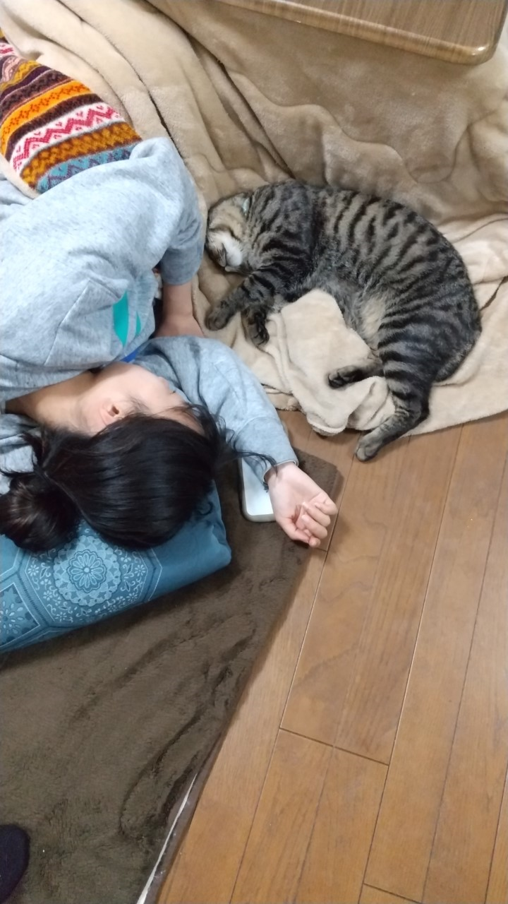 (娘と一緒に寝てるレオ。敵は襲ってこないから熟睡してても大丈夫だよ)
