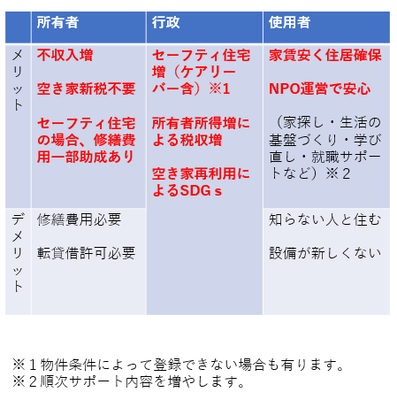 - 経済的弱者に向けた家探し相談の開始(開始時期調整中)