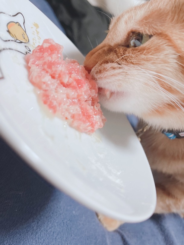 最近大好きなちゅーるも食べられなくて美味しいものを食べられていなかったのでがっついて食べていました。