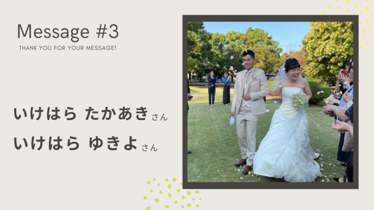 応援メッセージ#3 いけはら たかあきさん ゆきよさん