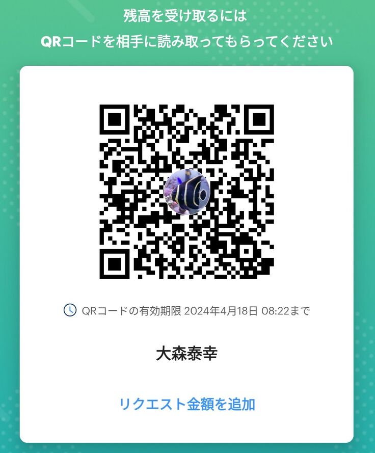 QRコードも掲載しておきますので、PayPayアプリの「スキャン」から送ることもできます。