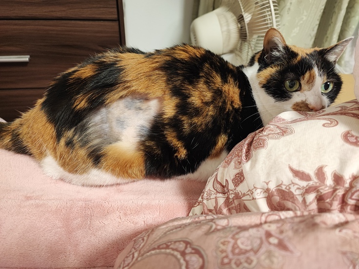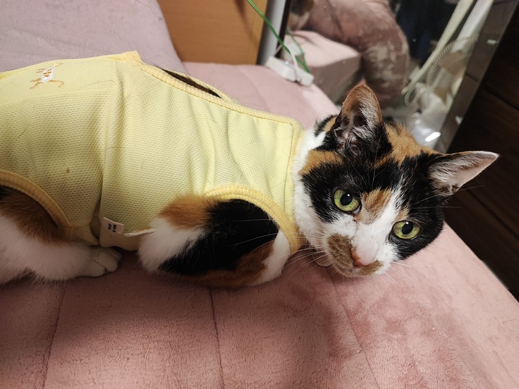 この日は猫の毛を綺麗にしました。術後服エリザベスウエアをずっと着せていましたが…