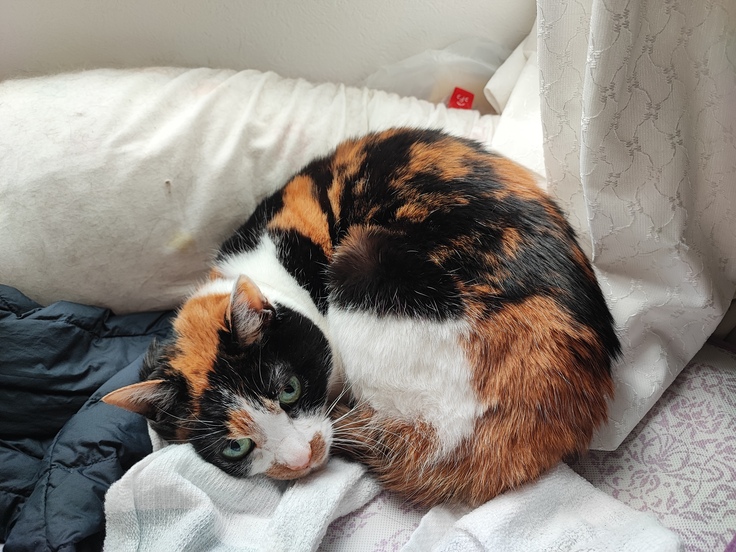 本人も反省したのか(?)なるべく布団の上で寝てくれるようになったので、念のためシーツやTシャツなどで包んで引っかかれることなく薬を飲ませることができるようになりました。