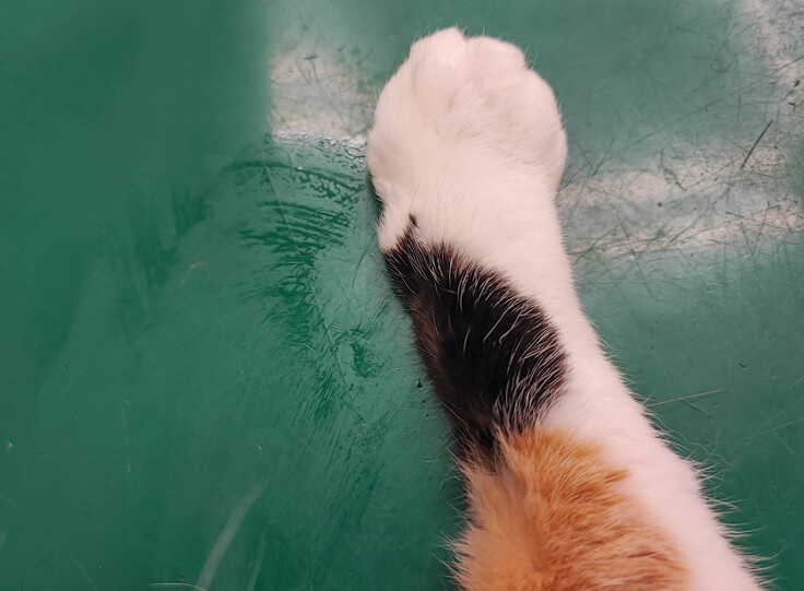 肉球付近を触るとかなりしっとりしているため、逃げる気満々ですが、本人は緊張して固まるので診察はしやすい…