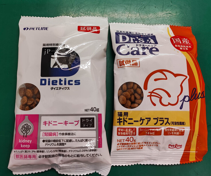 腎不全なら、腎臓の負担にあまりならないように、また次の結石ができにくいように、そのためのご飯をあげるべきですが… 昔からあげている腎臓サポートスペシャルドライフード、腎臓サポートパウチどちらも食べ飽きたようで、あまり食べない状況です。しょうがないので今はカルカンパウチ、カルカン下部尿路ドライフードを与えており、こちらは食べてくれる状況です。