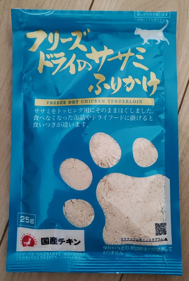 あとはフォロワーさんから教えていただいた、フリーズドライのササミふりかけをご飯に混ぜると、これも食べてくれやすくなります