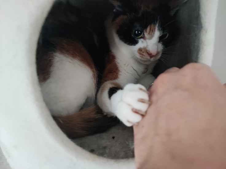 キャットタワーから出てこないので、ラプロス飲ませるのが結構大変ですが… 毎回猫パンチされています(爪はあまり立てない猫パンチ)