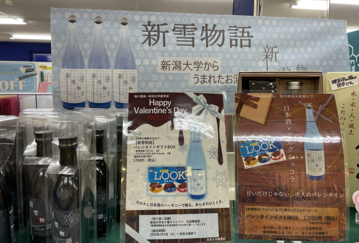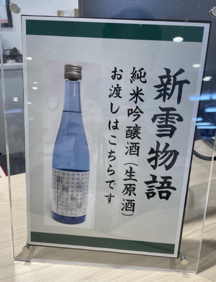 (↓事前にご予約いただいた、「新雪物語」生原酒を新潟大学生協で販売しています。近年で一番いい出来と勝手ながら判断しています。)
