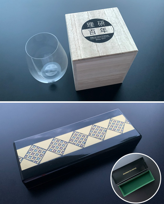 この度、理研創立百周年の記念に制作した「うすはりグラス」と「長角箱(山中塗)」をギフトとして追加しました。いずれも個数限定です。