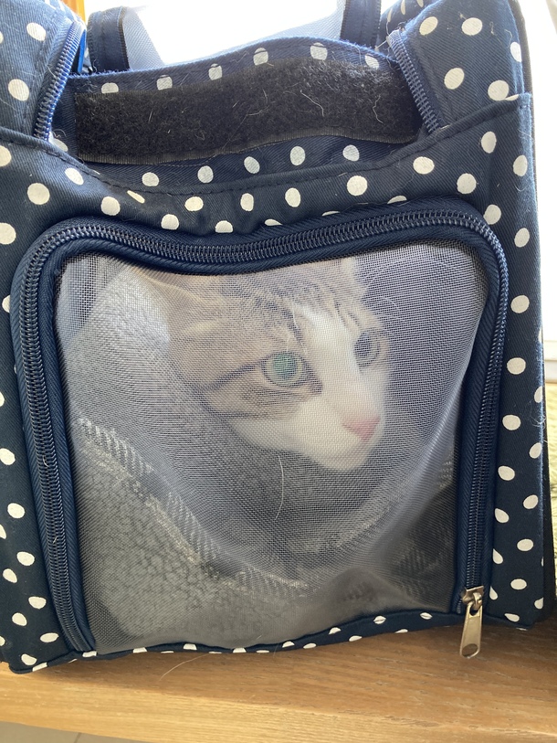 今までFIPの対処療法で散々注射を打った嫌な思い出があるのでしょう。何とか連れて行って先生の顔をみると、すぐに威嚇していました💧