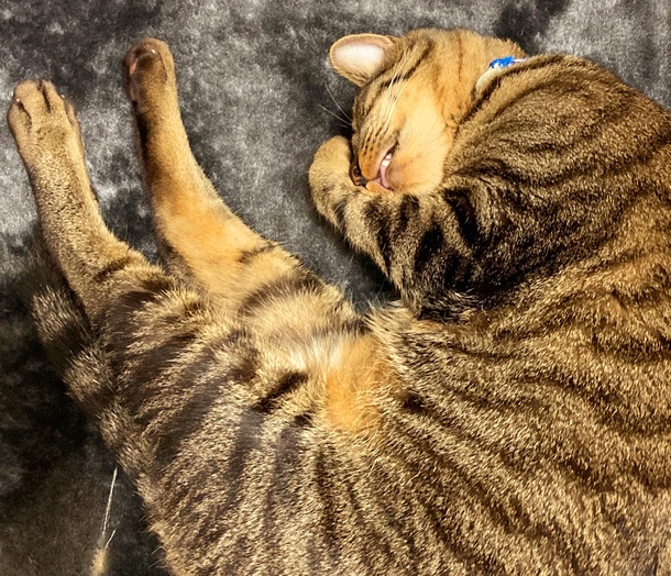 ツンツンしても起きないリクですが、おやつの音がすると飛び起きます😆
