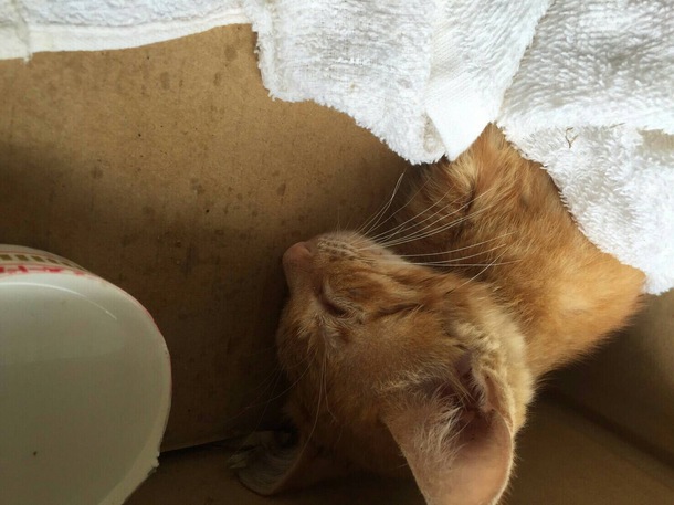 段ボールの中に入れてミルクとパンを与えた後で、お昼にちょっと横になって寝てたらその隙に箱から出て逃げ出したとあるじゃないですか!?