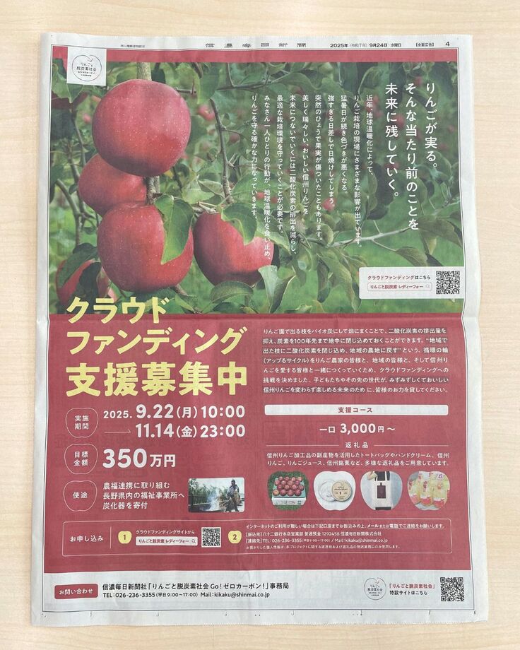 9月24日の信濃毎日新聞紙面に全面広告を掲載しました。