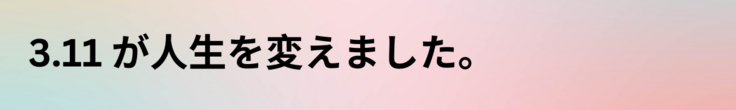 私の人生を大きく動かしたのは、2011年の東日本大震災です。